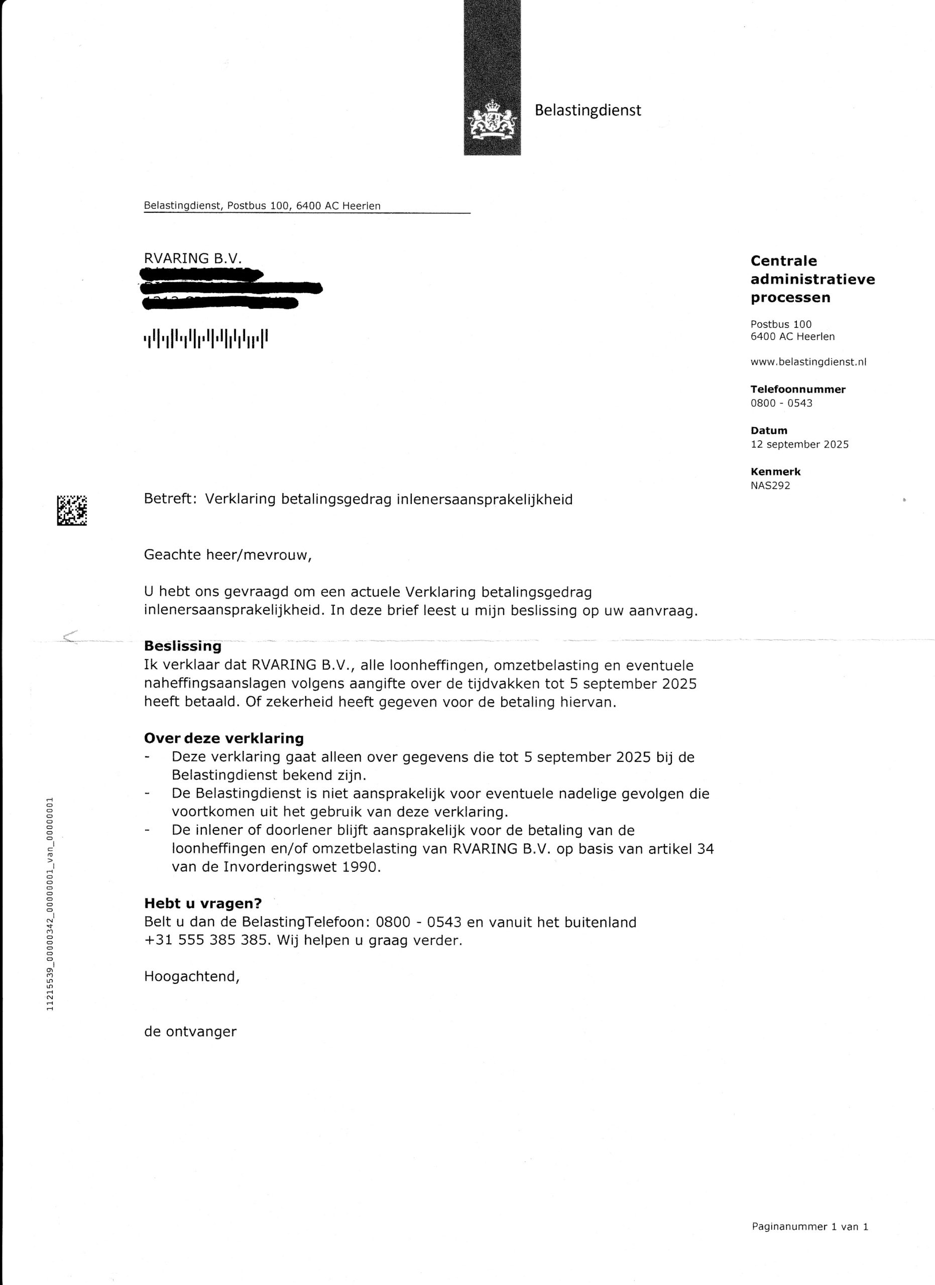 • Per kwartaal kunt u onze nieuwste verklaring betalingsgedrag van de belastingdienst inzien.