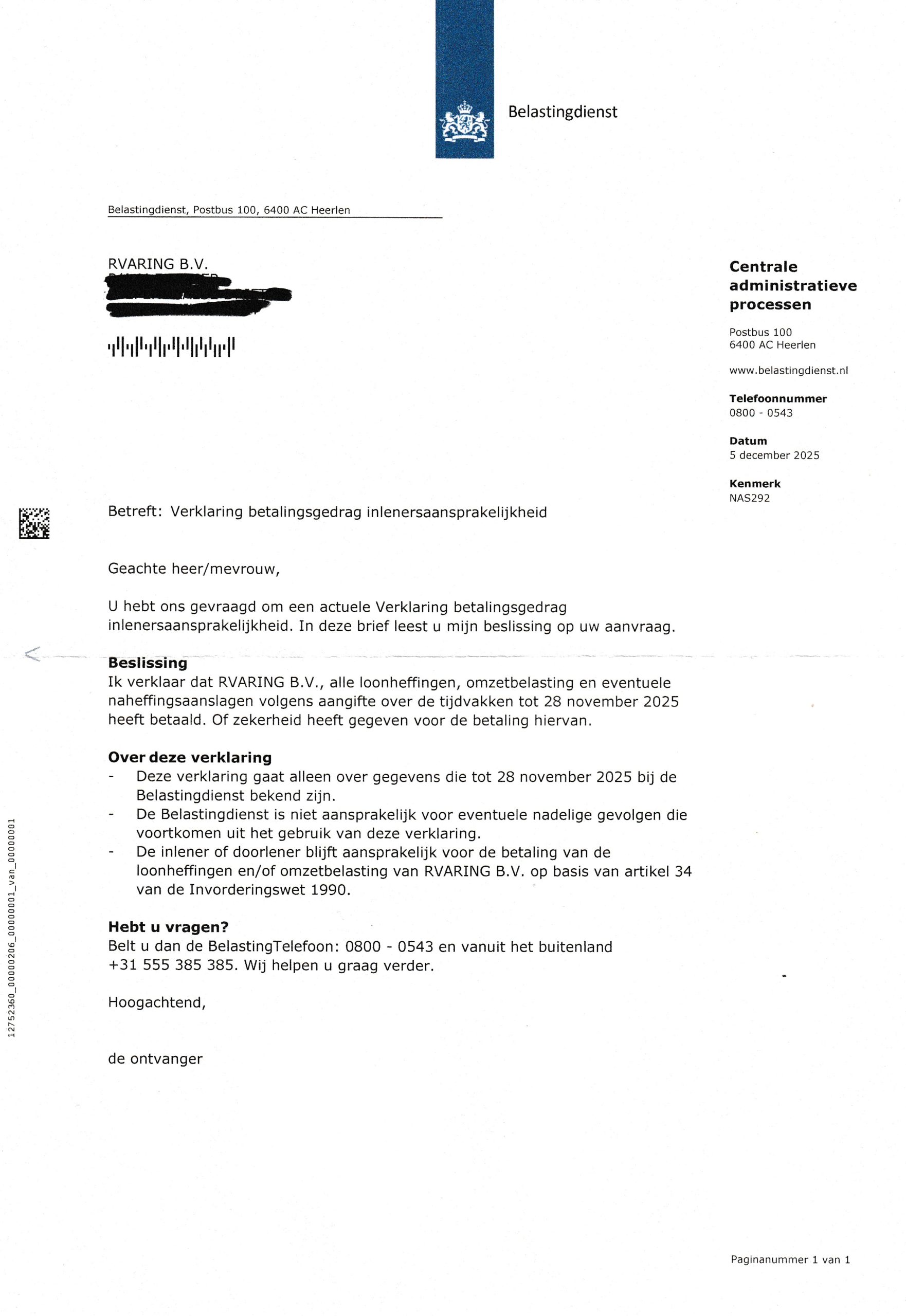 - Per kwartaal kunt u onze nieuwste verklaring betalingsgedrag van de belastingdienst inzien.